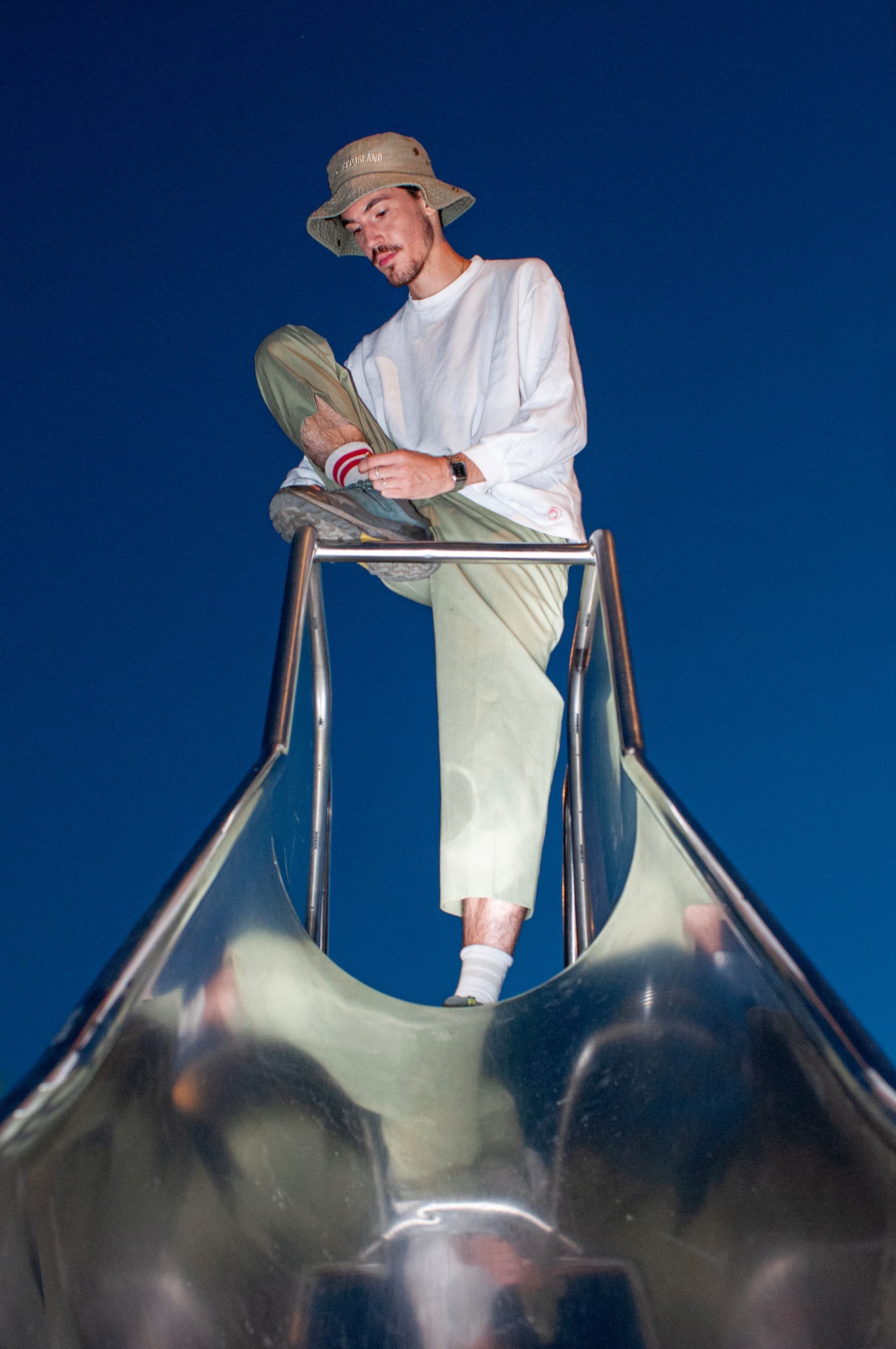 His 2021 mini-album YES.DJ embedded itself in club memory with its elastic grooves and sharp rhythmic interplay. With Cuspide des Sirènes, he turned toward slower, more hypnotic forms, allowing melody and atmosphere to unfold in wider arcs. Conceived as a self-contained world, the project extended into a Game Boy video game, underscoring his interest in building immersive environments.