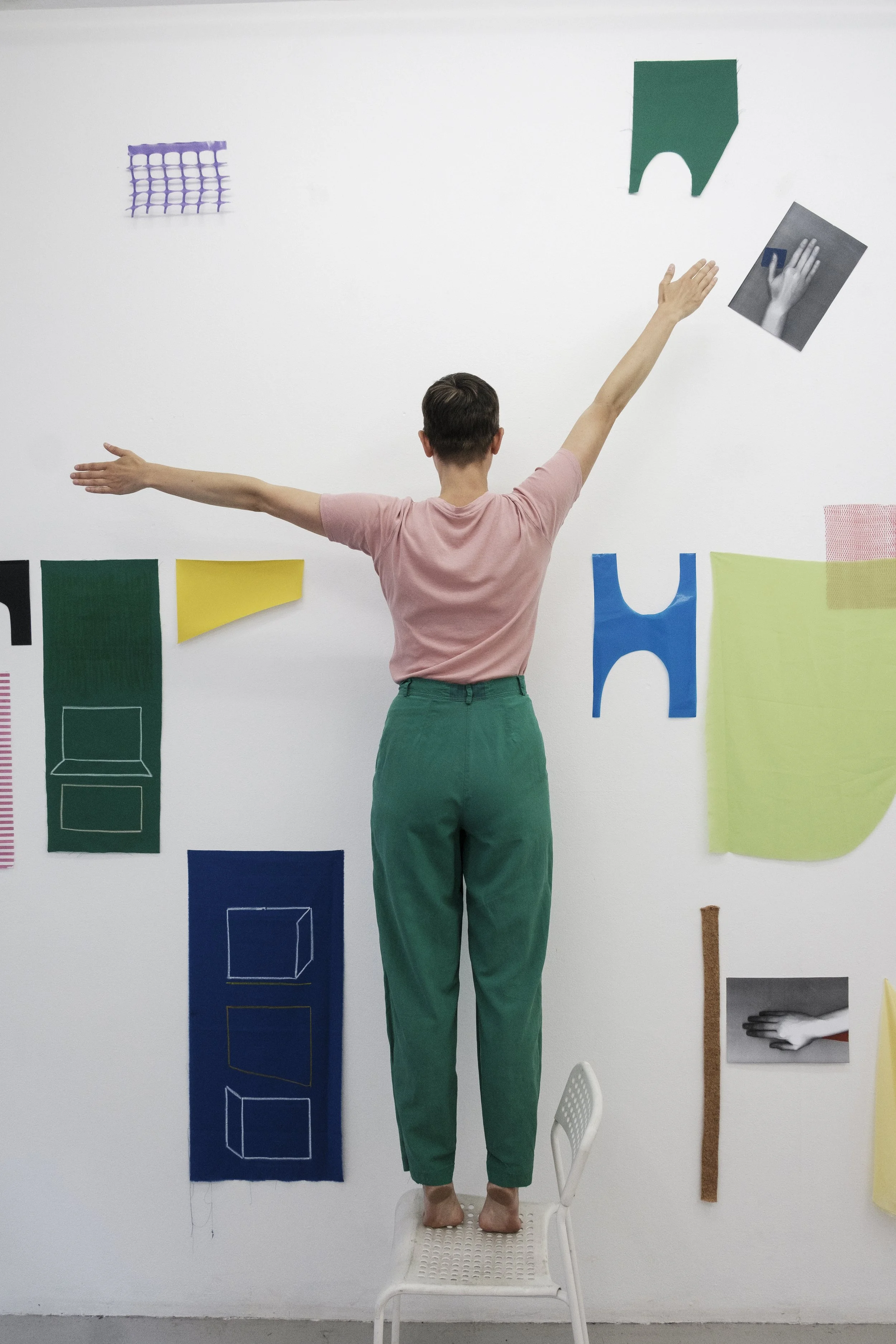 Her work is process-based and begins by exploring visual sensations through drawing, photography, video and sculpture. Grevelius prefers her work to sit in between scenography and reality, between surface and depth, where she can play freely with dimension, perspective and spatiality.